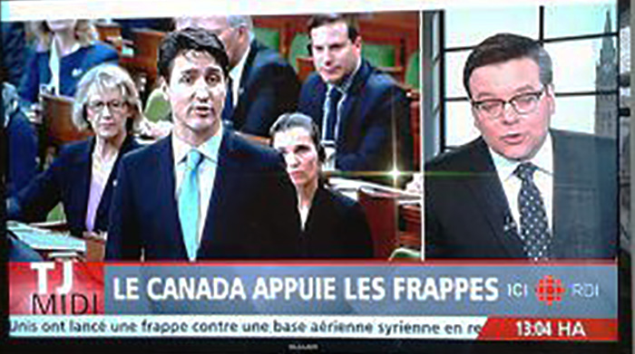 Algunos observadores consideran que a pesar de ser ilegal, desde el punto de vista del derecho internacional, el ataque sería moralmente justificado. Es la posición del gobierno canadiense. El ataque sería aceptable porque fue un gesto preciso y limitado, que no tiene otra consecuencia que la de disuadir Bashar el Assad en recurrir nuevamente a las armas químicas contra su pueblo, consideradas como un crimen de guerra.