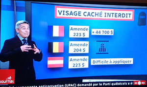 El 18 de octubre recibió la sanción real del representante de la corona la “Ley que favorece el respeto de la neutralidad religiosa del Estado y que busca en particular encuadrar las demandas de acomodos por motivos religiosos en algunos organismos”. Ella ordena, esencialmente, que los servicios públicos sean suministrados y recibidos con el rostro descubierto. La ley con la que el gobierno de Philippe Couillard esperaba cerrar el complejo expediente del “vivir juntos” concitó la unanimidad en su contra. Para unos es una ley islamofoba; para otros no respeta el consenso de la Comisión Bouchard/Taylor; para otros simplemente una ley confusa e inaplicable. El tema volvió a ser parte de la campaña para las elecciones provinciales previstas dentro de un año.