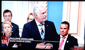 El 18 de octubre recibió la sanción real del representante de la corona la “Ley que favorece el respeto de la neutralidad religiosa del Estado y que busca en particular encuadrar las demandas de acomodos por motivos religiosos en algunos organismos”. Ella ordena, esencialmente, que los servicios públicos sean suministrados y recibidos con el rostro descubierto. La ley con la que el gobierno de Philippe Couillard esperaba cerrar el complejo expediente del “vivir juntos” concitó la unanimidad en su contra. Para unos es una ley islamofoba; para otros no respeta el consenso de la Comisión Bouchard/Taylor; para otros simplemente una ley confusa e inaplicable. El tema volvió a ser parte de la campaña para las elecciones provinciales previstas dentro de un año.