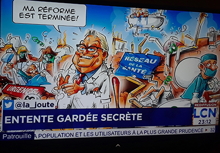 El trabajo en la salud se transformó en sinónimo de agotamiento profesional. La enfermera de CHSLD, Émilie Ricard en Facebook denunció la sobrecarga de trabajo de las enfermeras. Ella se pregunta de cómo el ministro puede afirmar que su reforma es exitosa. Emotivamente, denunció que en las condiciones actuales, esperaba que ninguno de sus parientes terminara en CHSLD. Y es que cuando un gobierno anuncia con orgullo que reinvierte para un segundo baño semanal a los usuarios más vulnerables, los servicios son verdaderamente malos.