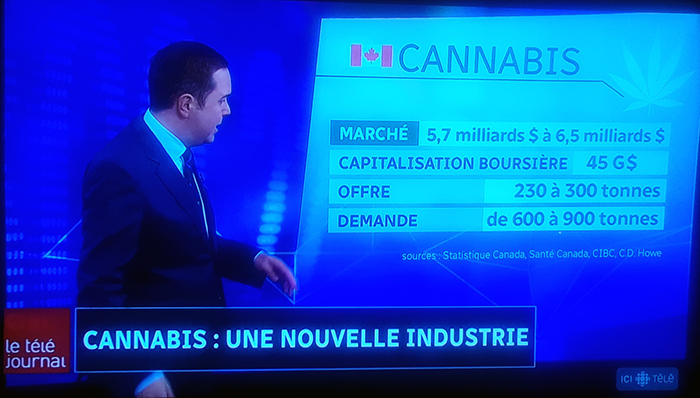 Casi cinco millones de canadienses de entre 15 y 34 años consumen regularmente el Cannabis en un mercado ilegal estimado en cerca de seis mil millones de dólares en 2017. El banco CIBC espera ventas anuales de 6,5 mil millones de dólares. A la larga, más de 10 mil millones. Un sector que creará unos 120 mil empleos en el primer año de legalización. El Instituto C.D. Howe teme que el mercado ilegal siga prosperando, porque la demanda es de 600 toneladas y solo se espera producir 300 toneladas el primer año.