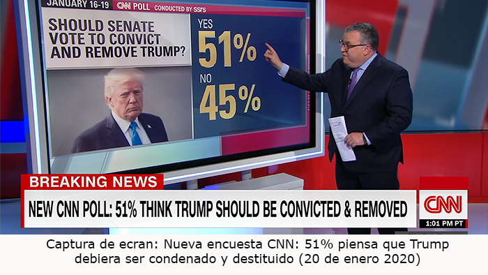 Será difícil obtener 2/3, porque significa 67 senadores sobre 100, porque el Senado comprende 53 republicanos y 47 demócratas. Aunque todos los senadores hayan jurado imparcialidad, solemnemente, ante el jefe de la Corte Suprema John Roberts, nadie cree que abandonen la línea de partido. 37 de ellos ya declararon que no cambiarán de opinión. Como se requiere que nada menos que 20 senadores republicanos cambien su voto, hay casi consenso de que el proceso de destitución fracasará. El proceso debiera durar un par de semanas, si se prolonga tendrá gran impacto en la opinión pública.