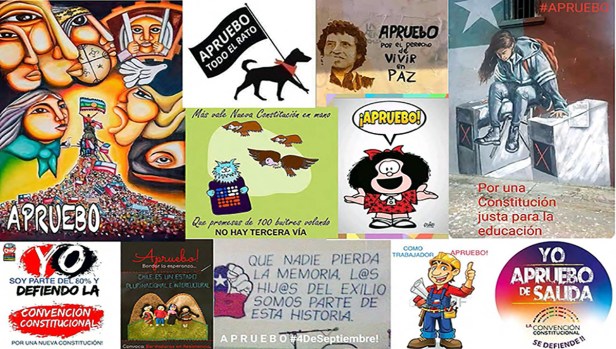 El bloque del Apruebo es un arco iris progresista. Desde el movimiento feminista, estudiantil, educadores, profesores, No+AFP, pobladores, organizaciones en los territorios, pueblos originarios, por los trabajadores de la salud, por los científicos, las organizaciones de derechos humanos, los trabajadores de la cultura, entre otros. Aunque los apruebazos, banderazos, actividades puerta a puerta han sido ignorados por los medios de comunicación empresariales, es indudable que han cambiado el carácter de la campaña en las últimas semanas.[xi]