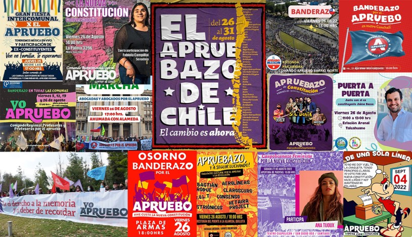 El bloque del Apruebo es un arco iris progresista. Desde el movimiento feminista, estudiantil, educadores, profesores, No+AFP, pobladores, organizaciones en los territorios, pueblos originarios, por los trabajadores de la salud, por los científicos, las organizaciones de derechos humanos, los trabajadores de la cultura, entre otros. Aunque los apruebazos, banderazos, actividades puerta a puerta han sido ignorados por los medios de comunicación empresariales, es indudable que han cambiado el carácter de la campaña en las últimas semanas.[xi]